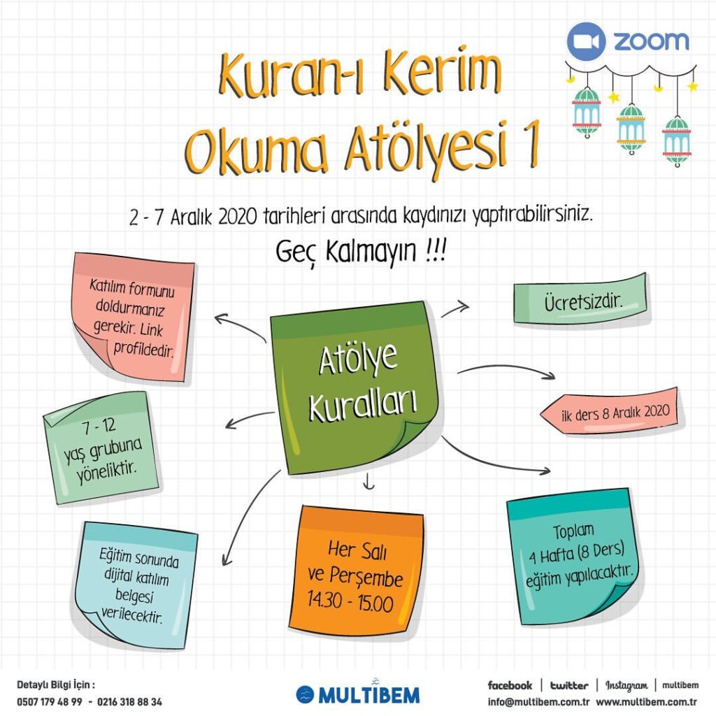 Kuran-ı Kerim atölyemiz başladı kayıt için aşağıdaki linki kullanabilirsiniz. forms.gle/z83T5wkaYj9W42vY6