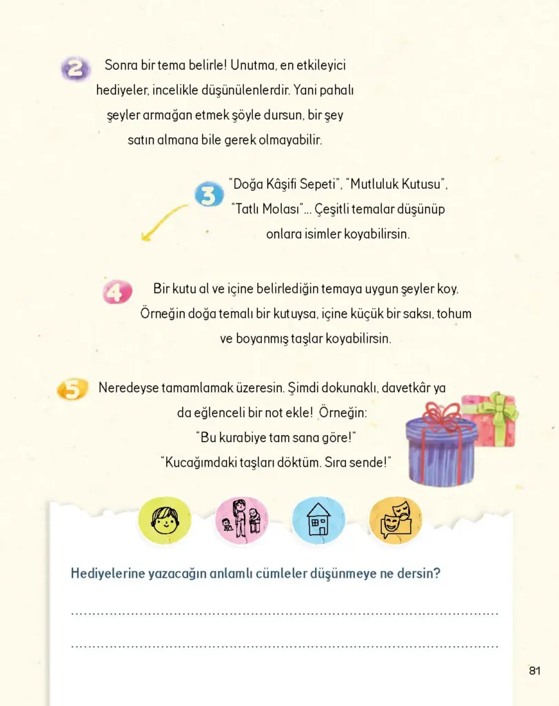 • Mutluluk kutusu ise sevdiği atıştırmalıklar, minik sürpriz kartları